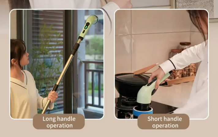 The high-speed rotating motor delivers strong scrubbing power to remove stubborn stains, soap scum, and grease with minimal effort.